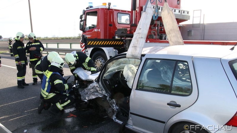 Um 17:08 Uhr am Ostermontag wurde die Freiwillige Feuerwehr Achau zu einem Verkehrsunfall mit verletzten Personen auf der B16 Richtung Münchendorf gerufen. Zahlreiche Mitglieder rückten mit den Fahrzeugen Rüstlöschfahrzeug, Hilfeleistungsfahrzeug 2, Wechsellader mit Kran und Kommandofahrzeug aus. Beim Eintreffen am Einsatzort konnte festgestellt werden, dass aus bisher ungeklärter Ursache zwei Personenkraftwagen im Bereich der langgezogenen Kurve seitlich versetzt frontal kollidiert waren. Die drei Insassen der Fahrzeuge wurden unbestimmten Grades verletzt und bereits vor Ort vom Roten Kreuz versorgt. Zwei Rettungshubschrauber des ÖAMTC waren zum Abtransport der Verletzten nötig. Die beiden Fahrzeuge wurden von unseren Feuerwehrfrauen und Männern von der Fahrbahn entfernt. Auf Grund der starken Beschädigungen , mussten beide Fahrzeuge mittels Wechselladerfahrzeug abtransportiert und an einem sicheren Ort abgestellt werden. Im Zuge des Einsatzes wurde durch in Polizei die B16 ca. 1,5h gesperrt.