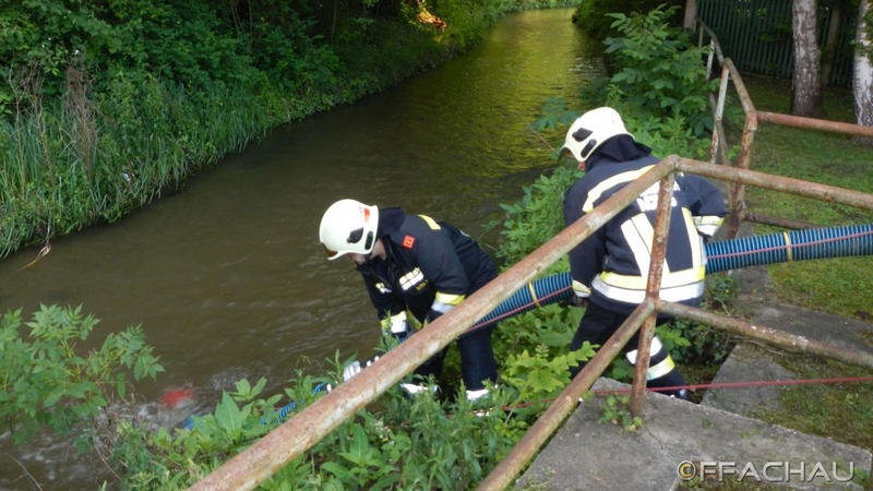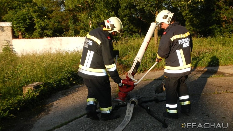 Am Freitag den 25. Mai 2018 fand eine Löschübung mit Atemschutz statt. Als Übungsobjekt diente diesmal das alte Mühlengebäude in der Mühlgasse. Die Feuerwehr Achau rückte mit RLFA, LFA-W und Last Fahrzeug und 15 Mann zur Übung aus. Die Mannschaft aus dem RLFA rüstete in erster Linie einen Atemschutztrupp aus und führte den Innenangriff durch. Währenddessen baute eine zweite Mannschaft die Zubringleitung auf. Es wurde ca. 100 Meter entfernt mittels Tragkraftspritze das Wasser vom Ortsbach entnommen. Als die Zubringleitung aufgebaut war, wurde ein Außenangriff mittels Wasserwerfer durchgeführt. Nachdem der Atemschutztrupp das Gebäude nach Personen durchsucht hatte, wurde von ihnen auch die Brandbekämpfung vorgenommen.