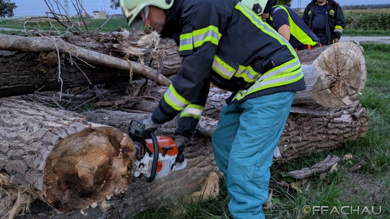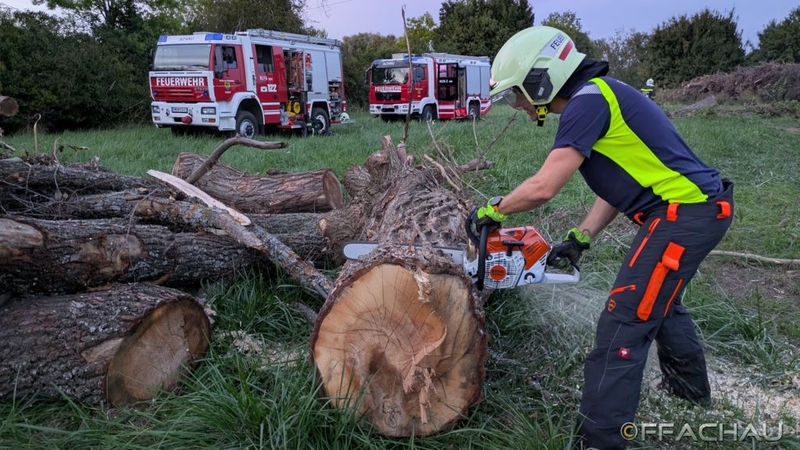 An diesen Übungsmontag stand der Umgang mit der Kettensäge am Programm. Dank eines engagierten Kameraden konnte richtiges Bruchholz geschnitten und umgestürzte verkeilte Bäume zerschnitten werden. Es wurde die richtige Schnitttechnik und auch die Sicherheit im Umgang mit der Kettensäge gelernt und gefestigt.