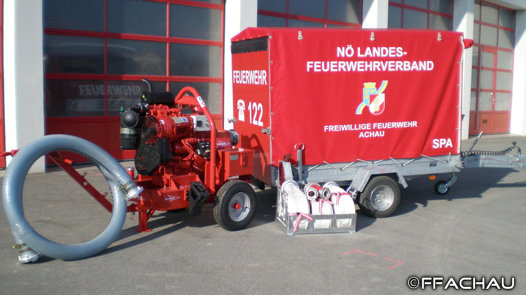 DatenFörderleistung 200.000 Liter in der Stunde Förderhöhe 35 Meter 32 PS Diesel Motor Das Pumpenaggregat ist so aufgebaut, dass es komplett am Einsatzort abgesetzt werden kann und der Anhänger für eventuelle Transportzwecke zu verwenden ist.
